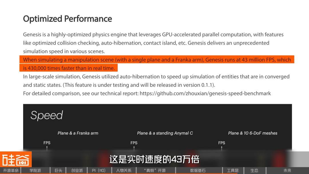 比如说,Genesis号称在一张RTX 4090显卡,模拟一个Franka机械臂的速度是每秒4300万帧。这是实时速度的43万倍。在Genesis里训练1小时,相当于在真实世界训练超过49年。