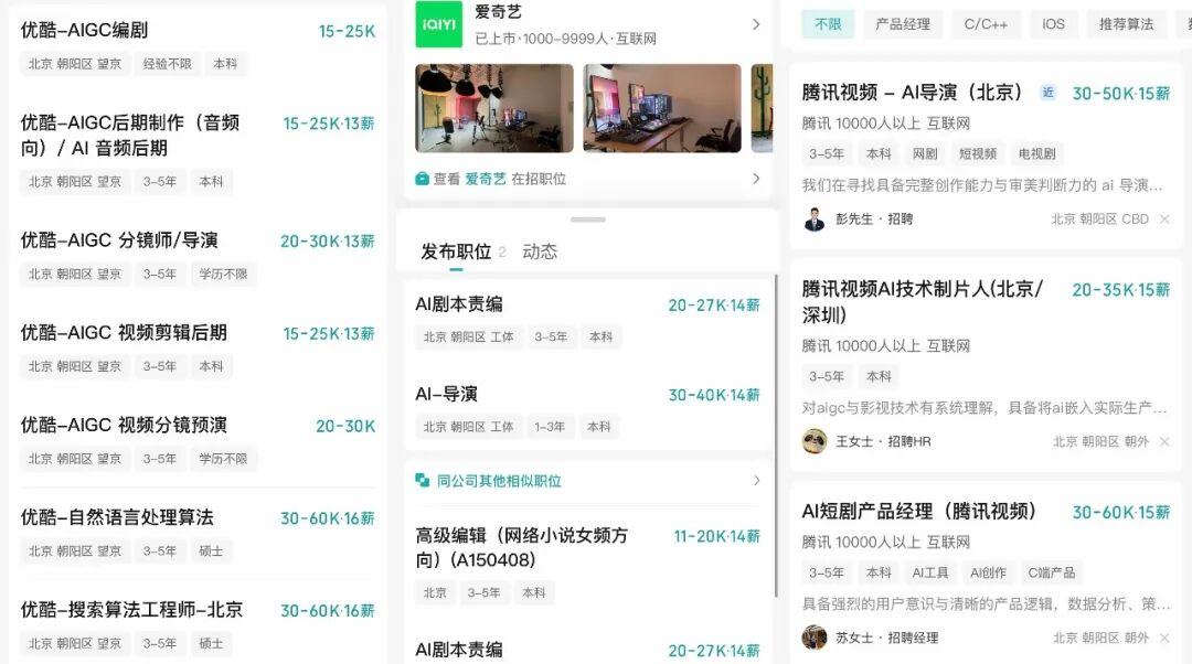 与此同时,腾讯视频和北京电影学院的AI影视联合实验室也宣布,2026年将落地首届AI影视联合赛事。优酷、爱奇艺等平台也在同步招募AI相关的in-house团队,将一部分创作能力直接纳入内部体系。