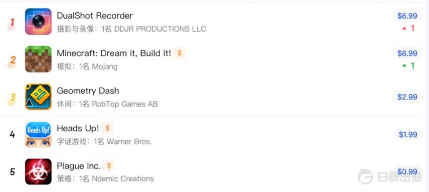 没错,「DualShot Recorder」被设计为一次性买断的付费应用,而且并不是 1 刀 2 刀这种特别便宜的价格,用户需要支付 6.99 美元后才可以下载。此时,登顶付费榜比免费榜更有指向性的是,用户真实的付费意愿。我们按单日下载量 1w 保守预估,产品的分成前单日收入大概是 7 万美元,上线 3 天就是 21 万美元,超 140 万人民币。
