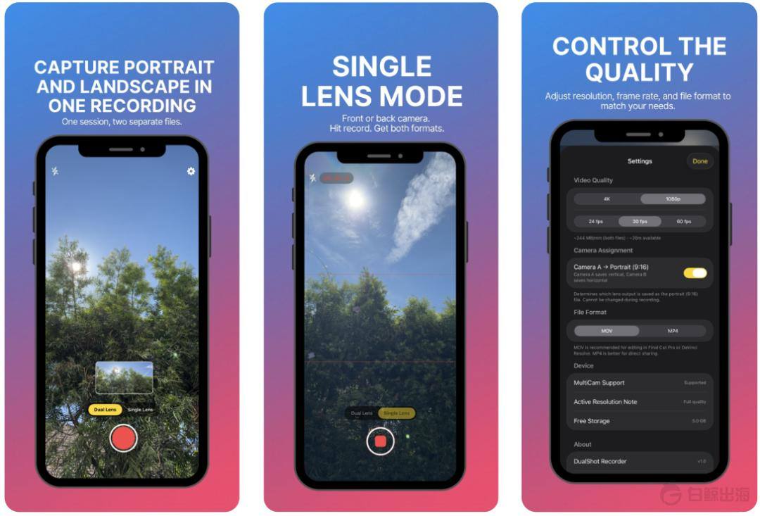 「DualShot Recorder」使用方法非常简单,应用内提供双镜头和单镜头录制两种模式。