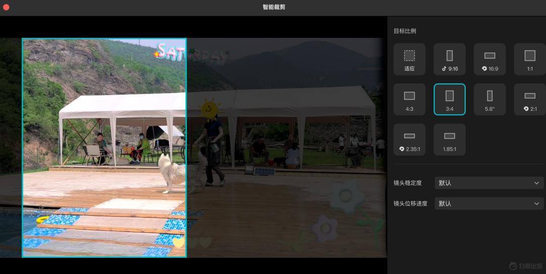 以剪映「智能裁剪」为例,App 会根据视频首个画面去确定选框的位置,用户不能调整,后期很多画面信息都会损失