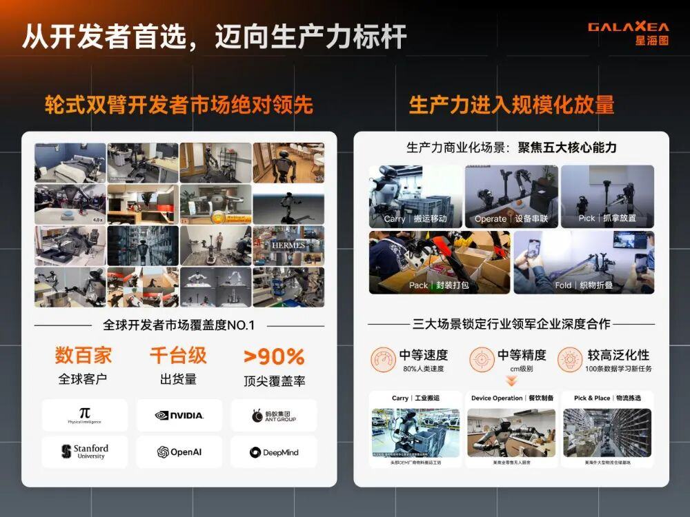 生产力市场规模放量:星海图聚焦搬运移动、抓拿放置、封装打包、织物叠放和设备串联五大核心垂类场景,目前已完成千台级订单跑通,并锁定了工业搬运、物流分拣、商业展示类行业领军企业深度合作。2026年,随着供应链与场景能力的全面成熟,星海图将正式开启万台级规模化放量,定义具身智能真实生产力的新高度。