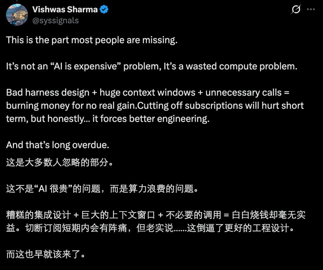 更有人直接说:Anthropic 此举真正传递的信号是 —— 编排层才是产品,而不仅仅是模型本身。订阅制与 API 计费之间的张力,不过是这个更深层逻辑的表面症状。