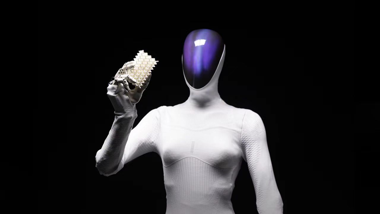 作为1X主打产品,NEO机器人的外观,例如脸部,并没有追求极致的复刻还原,而是全身穿着一套具有生物触感的柔性外衣,呈现出一种「柔顺性」的身体结构。