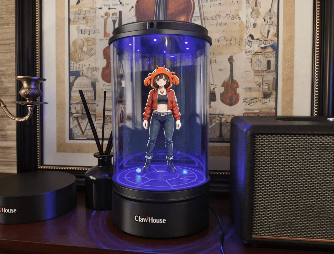 因此,这一派的参与者来头更为多样。比如,AI 玩具和数字生命技术服务商聊趣智能科技 Chatoys 推出的 ClawHouse,拥有游戏开发背景的团队将虚拟恋人与迷你主机结合,把情感交互 Agent 与本地硬件绑定,让「龙虾」拥有了可以定制的虚拟形象。