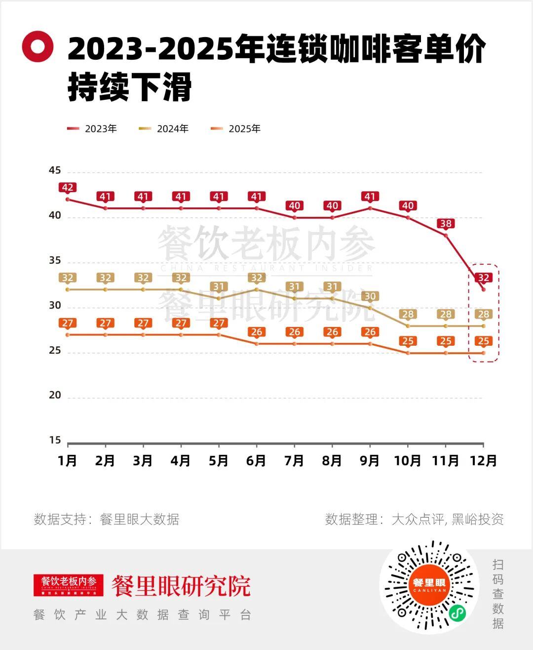 《中国咖啡产业报告2025》显示,从2023年到2025年,连锁咖啡客单价连续下滑,从42元下探到了25元。