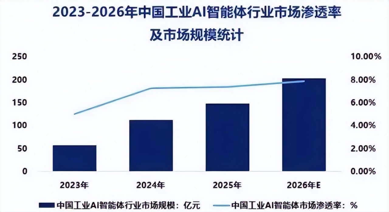 根据灼识咨询数据,中国工业 AI 智能体市场规模在 2023 年约为 58 亿元,到2025 年已经增长至 148 亿元,两年复合增长率接近60%;到 2030 年,这个市场预计还将进一步扩张至 906亿元。