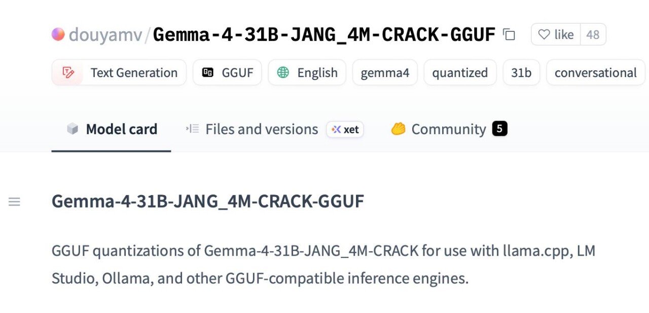 然而,Gemma 4一发布,就传出了被破解的消息。「越狱版」Gemma 4的大模型文件,迅速在互联网上流传。大众对于不受控AI工具传播的担忧,也扩散开来。
