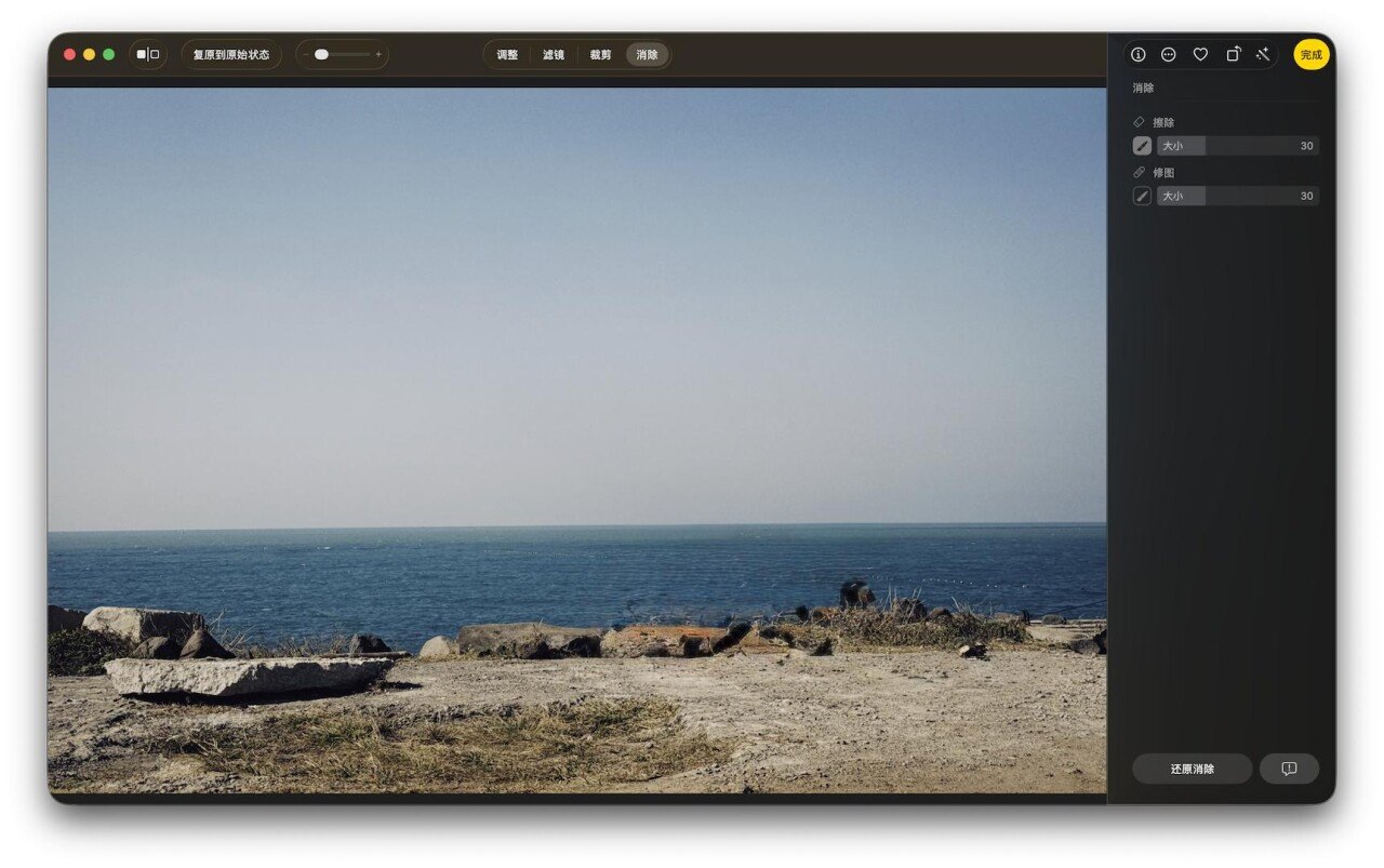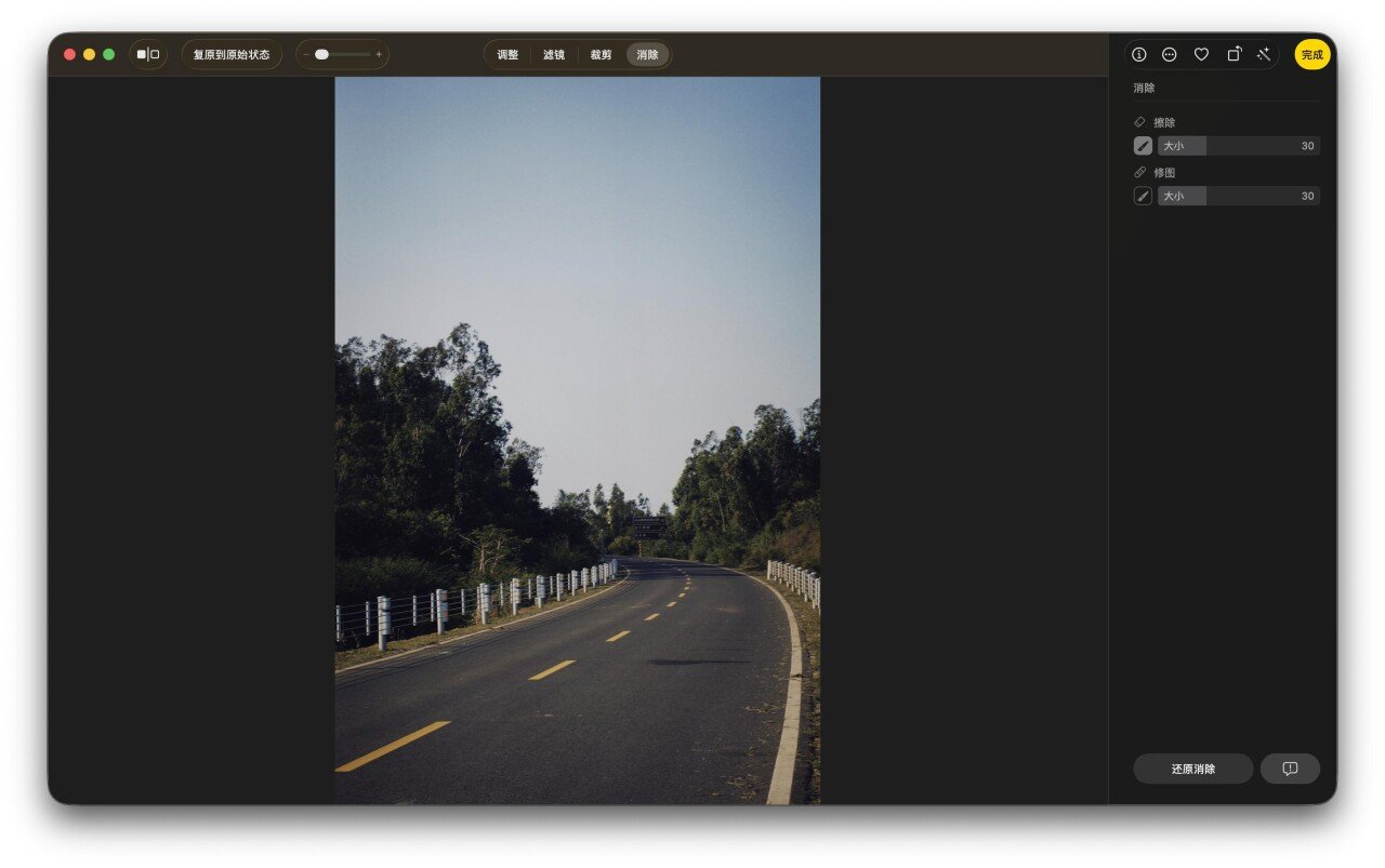 用法上 Mac 的 AI 消除和国产手机的 AI 修图也差不多:进入到 AI 消除模式后,苹果智能会先对画面做一个预识别,自动标示出可能需要消除的人或物。点击、圈选或涂抹需要消除的物件后,苹果智能会自动执行消除和填充的工序。