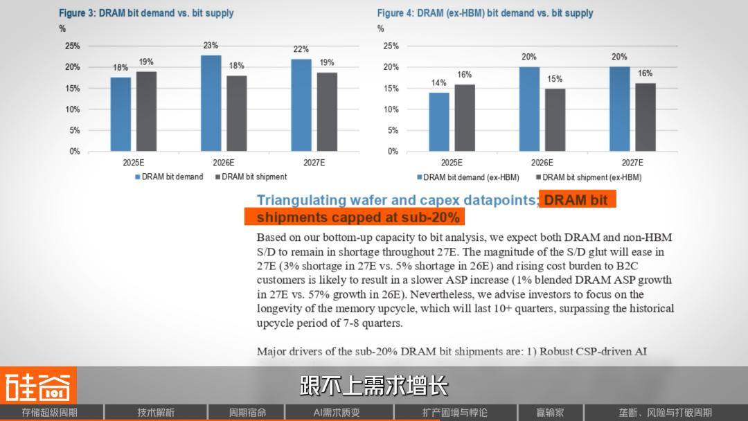 第四次是2020到2021年,疫情驱动的意外繁荣。居家办公、云用量暴增,但恐慌性双重下单制造了虚假需求,退潮后库存严重积压,接着就是2022到2023年的痛苦大跌。从那时起产能被大幅削减,但正是这段保守期为现在的短缺埋下伏笔。进入2025年,全行业产能再次严重不足。
