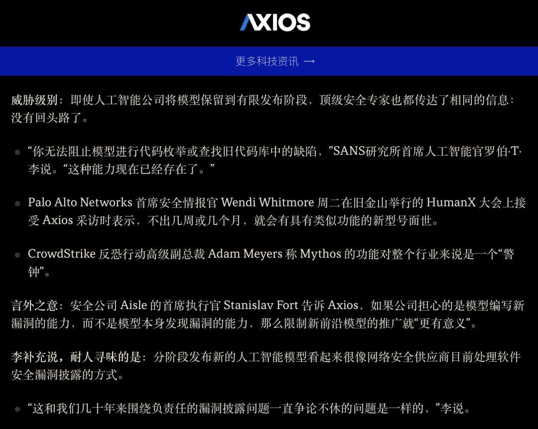 而且最讽刺的是,真正把这件事推到公众面前的,还不是黑客真的用它打爆了什么系统,而是模型公司自己先害怕了。