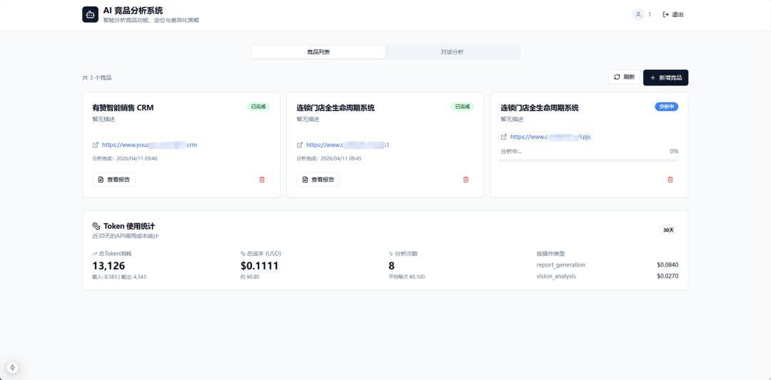 刚开始我对 AI 竞品分析的设想非常简单:输入一个目标链接,系统自动分析页面内容,并按照固定的 Prompt 输出一篇结构化的竞品分析报告。