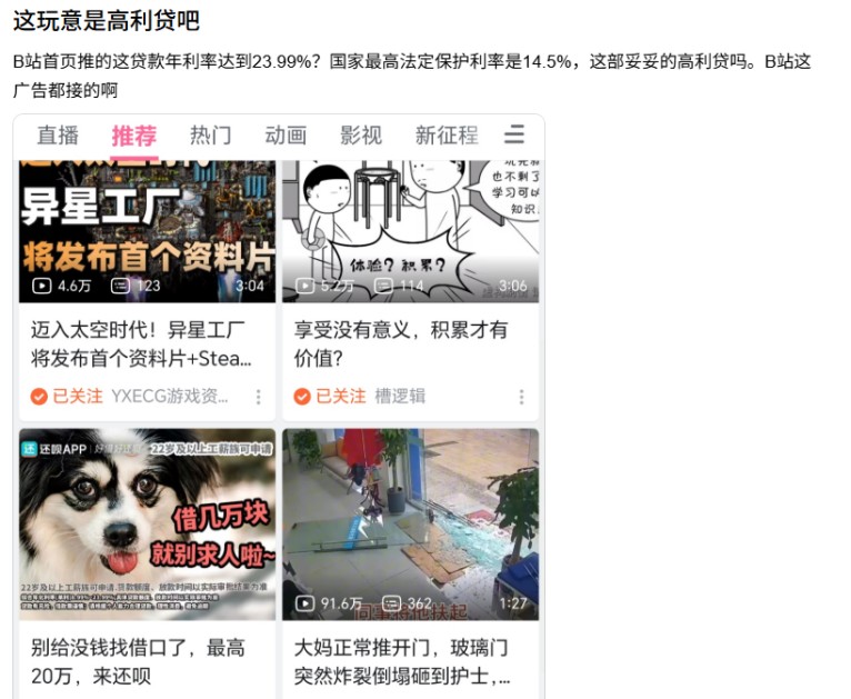 另一个则是播放页悬浮广告、弹幕广告等非贴片广告。其中,金融、保险等广告一直备受争议;另外,在视频评论区把用户引流到第三方平台的“软广”,也成了野蛮生长的灰色地带。
