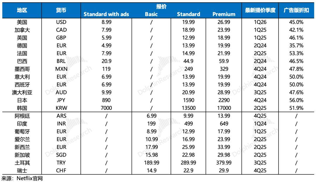 竞争加剧,会直接影响Netflix的涨价逻辑、进而导致长期估值中枢下移。因此3月底开启的涨价周期,效果是否一如既往,非常值得关注。