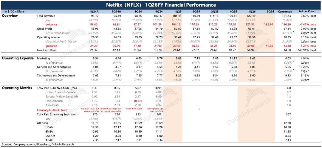 费用端可能也有收购影响,3月奈飞收购了一家AI影视制作公司InterPositive,因此业务整合后可能也会涉及到一些人员费用的增加。