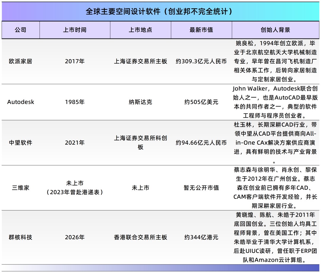 按2024年收入计,群核科技以23.2%的市场份额位居中国空间设计软件行业第一;全球月活跃用户超过8600万,是全球最大的空间设计平台。