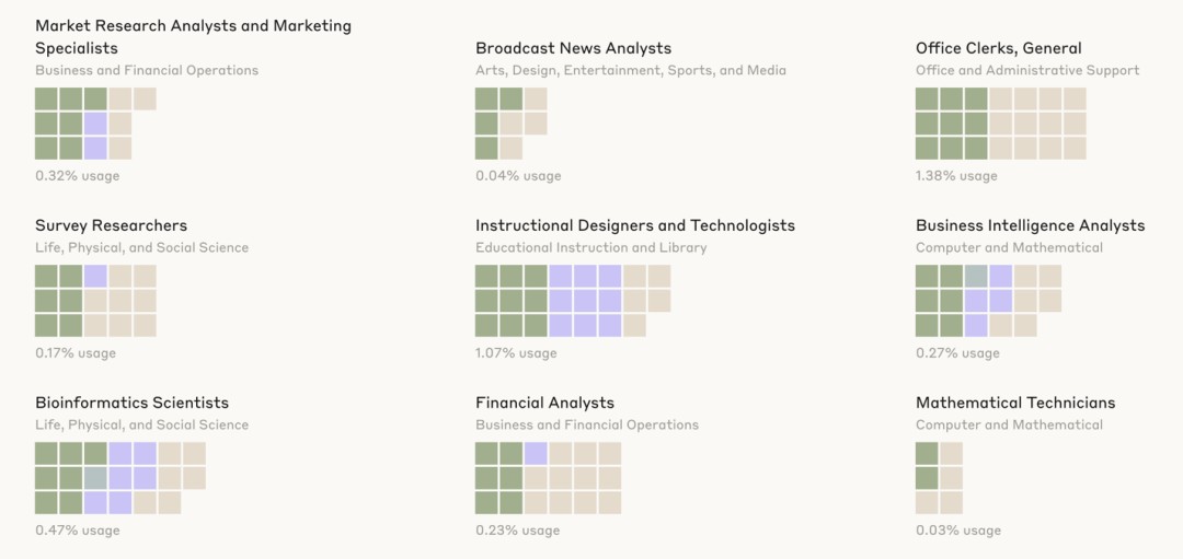 Anthropic 3月发布的《Anthropic经济指数》显示,客服、市场分析、设计等以信息处理为核心工作内容的岗位受AI的冲击最大——由于AI承担了原本需要高学历才能胜任的任务,这些工作的专业护城河正在崩坏。