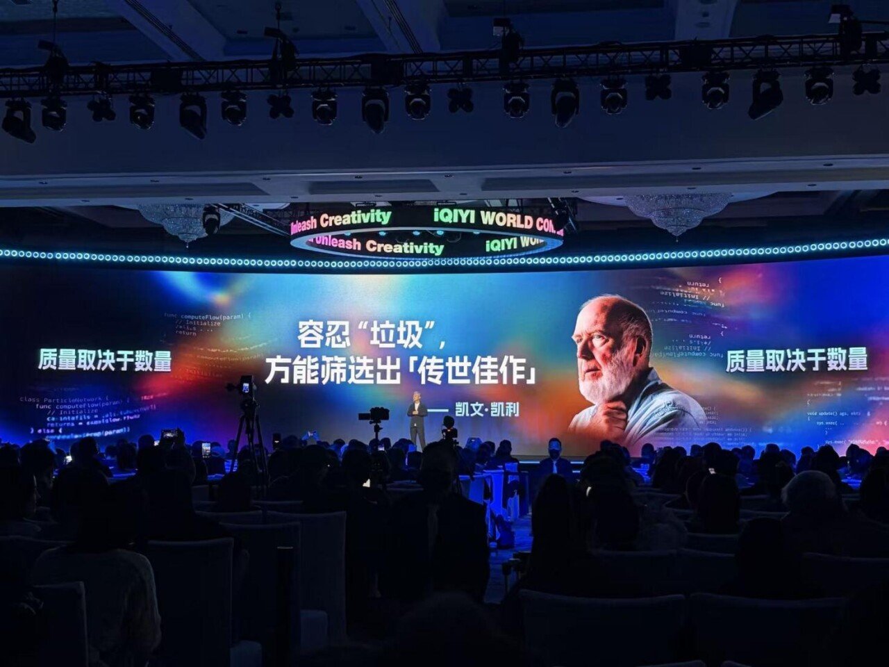 这一届爱奇艺世界大会,AI更是唯一的核心议题,从头讲到尾。龚宇的判断很直接:“(AI技术革命)十年一遇我都有点含糊,也有人说AI是人类最后一个发明的,也有道理——因为体力、脑力都解放了,你还往哪解放?”他说这话时,语气里带着一种“活在这个时代真有意思”的兴奋。