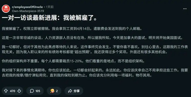 Reddit上甲骨文员工爆料被裁员的中文转译版