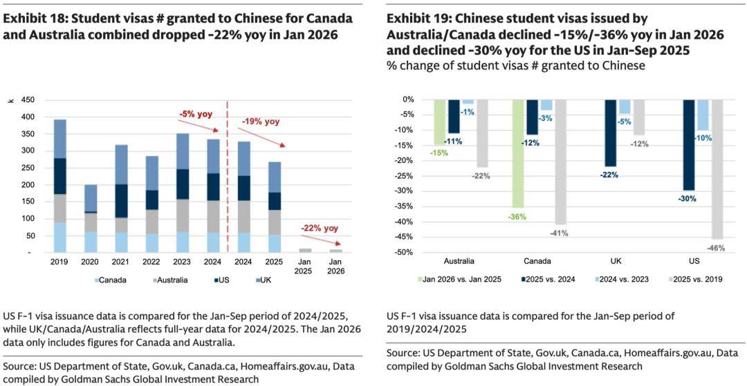 1)留学仍有压力:整体留学业务预计增长持平,其中考培增长7.4%,但受影响更多的咨询应该逃不过负增长。不过国际环境在年初并未有太多缓解,导致北美、英国两个主要留学去向的签证审批量还在大幅下滑。其他地区如澳洲地区,虽有替代性需求,但也没有太多填补缺口的能力。