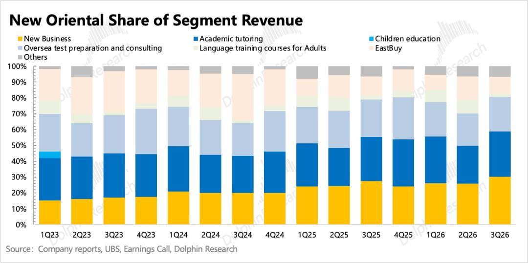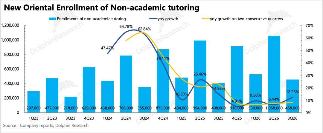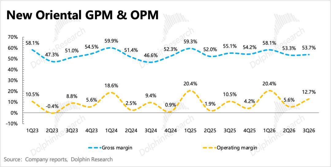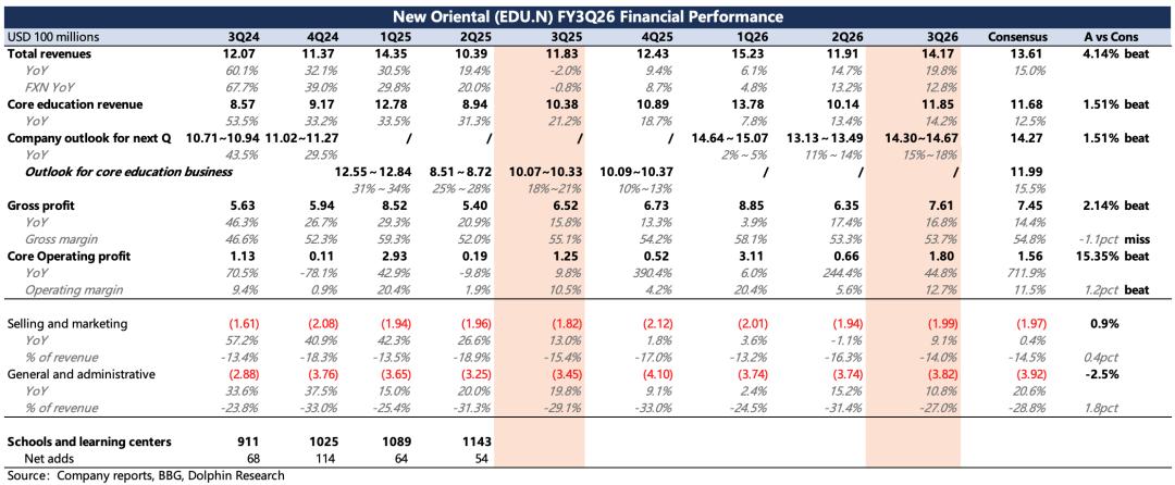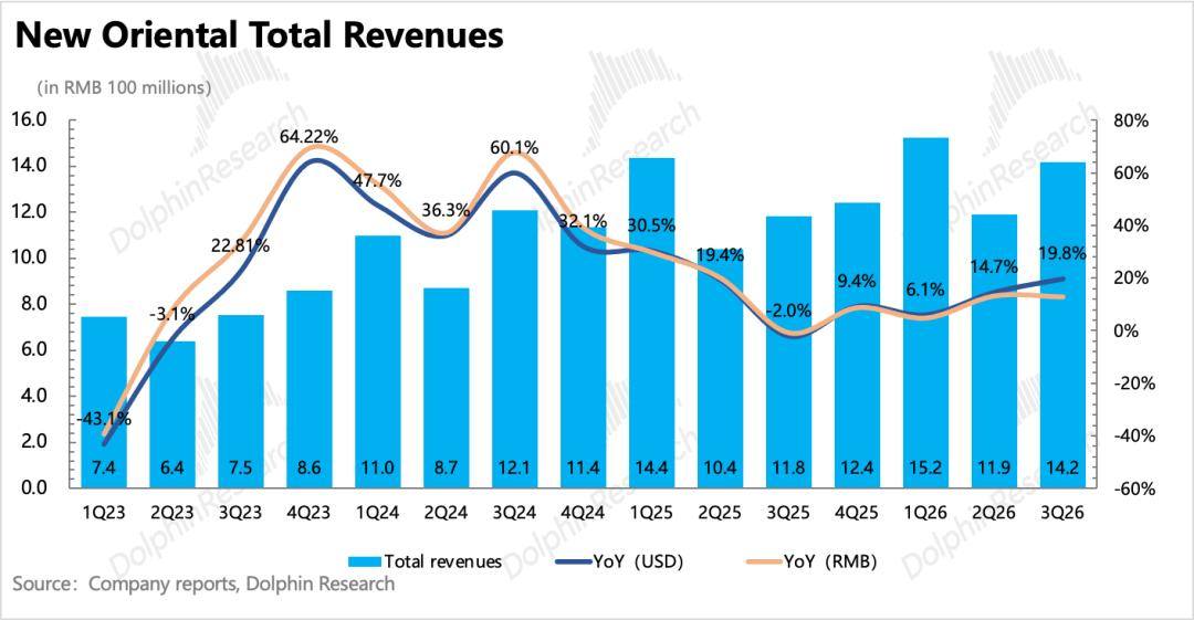 新东方北京时间4月22日美股盘前发布了2026财年第三季度的业绩,对应的是自然年下2025年12月至2026年2月的部分秋季学期+寒假期间的经营情况。