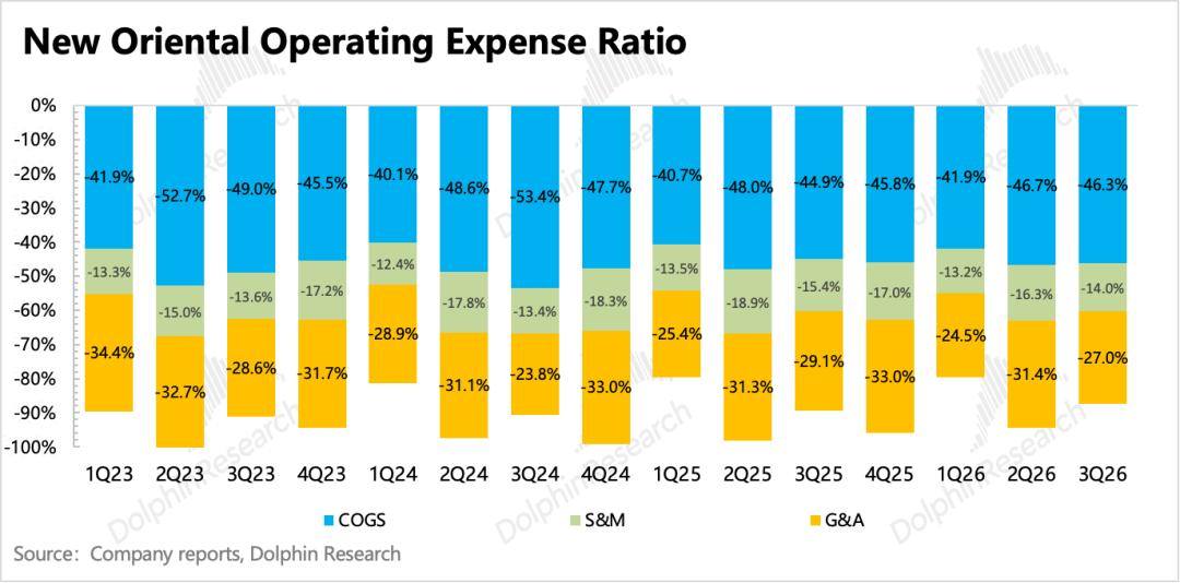 5、业务整合提升效率:本季度仍处于4Q25FY开启的降本增效周期,以及近期关于留学业务的整合(考培和咨询团队合并)也在推动公司整体盈利能力的提升。这主要体现在管理费用的优化,费率同比降低2pct,带动最终经营利润也同比优化2pct。