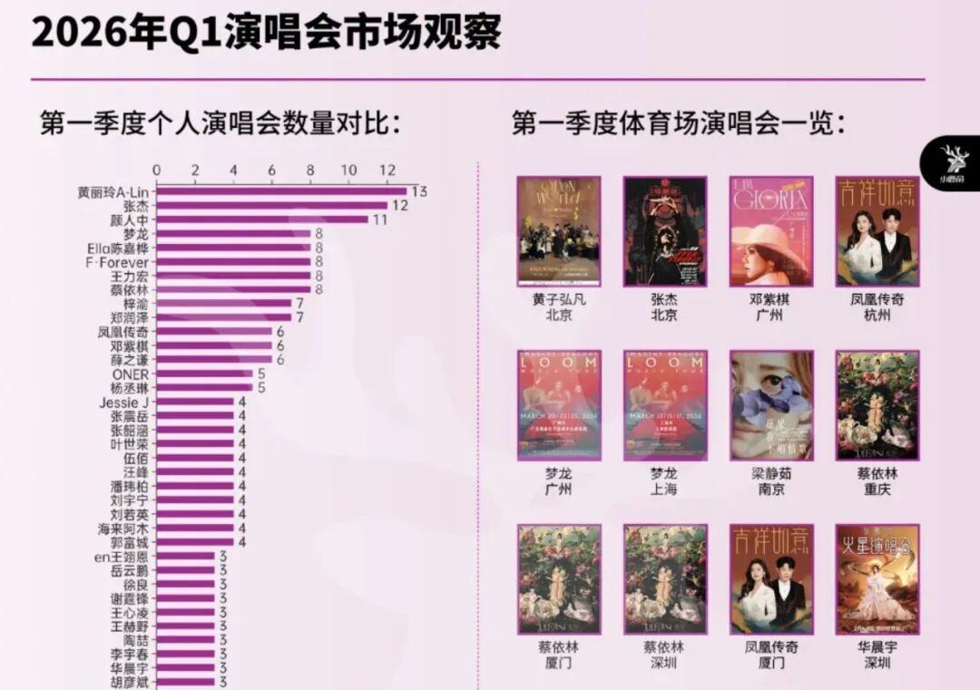 如果说话题破圈只是今春演唱会火爆的侧面,那么最近几家数据平台的一季度报告,则强势证明了Q1演唱会的全面暴走: