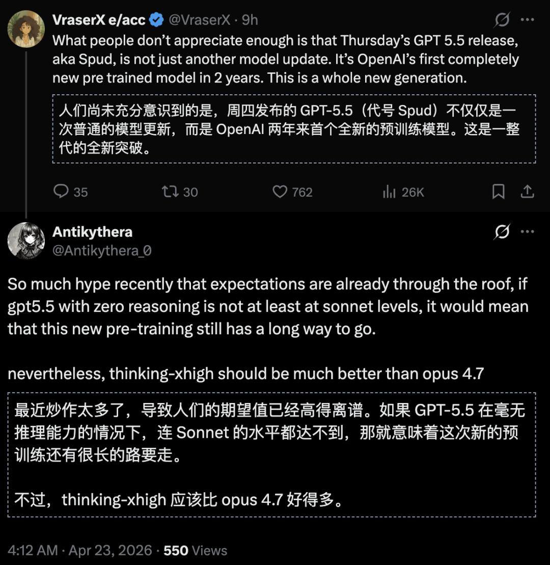 无论如何,GPT-5.5作为OpenAI最近两年在预训练上的全新突破,值得期待。