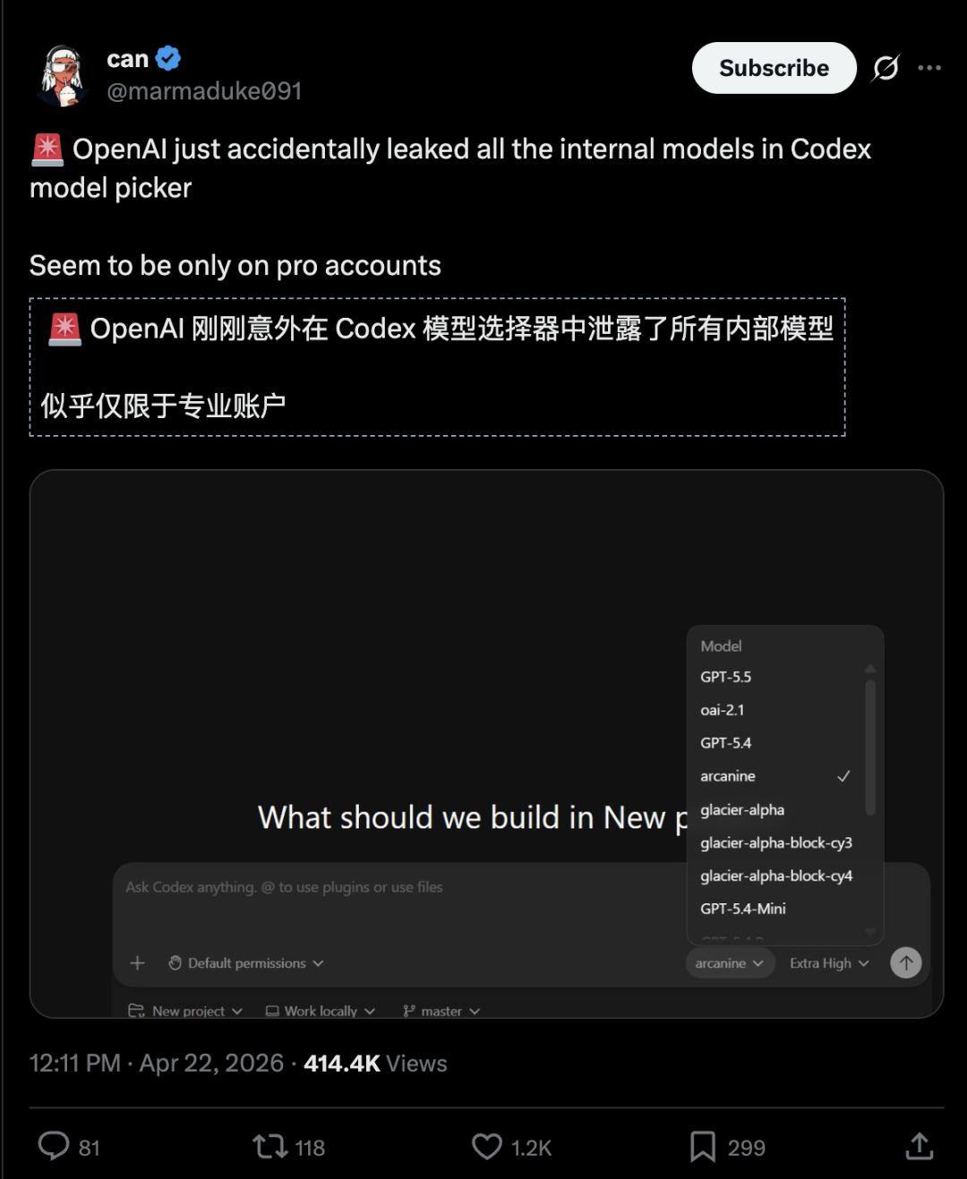 https://www.reddit.com/r/singularity/comments/1ssb7mz/caught_the_massive_openai_codex_model_leak_on/