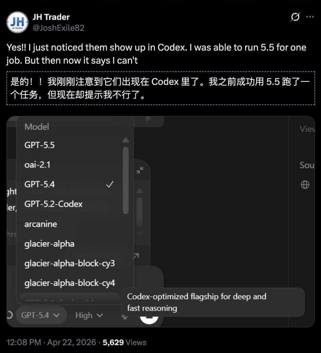 就在今日凌晨,Codex页面已经恢复正常,下拉菜单里又只剩下那几个熟悉的名字。