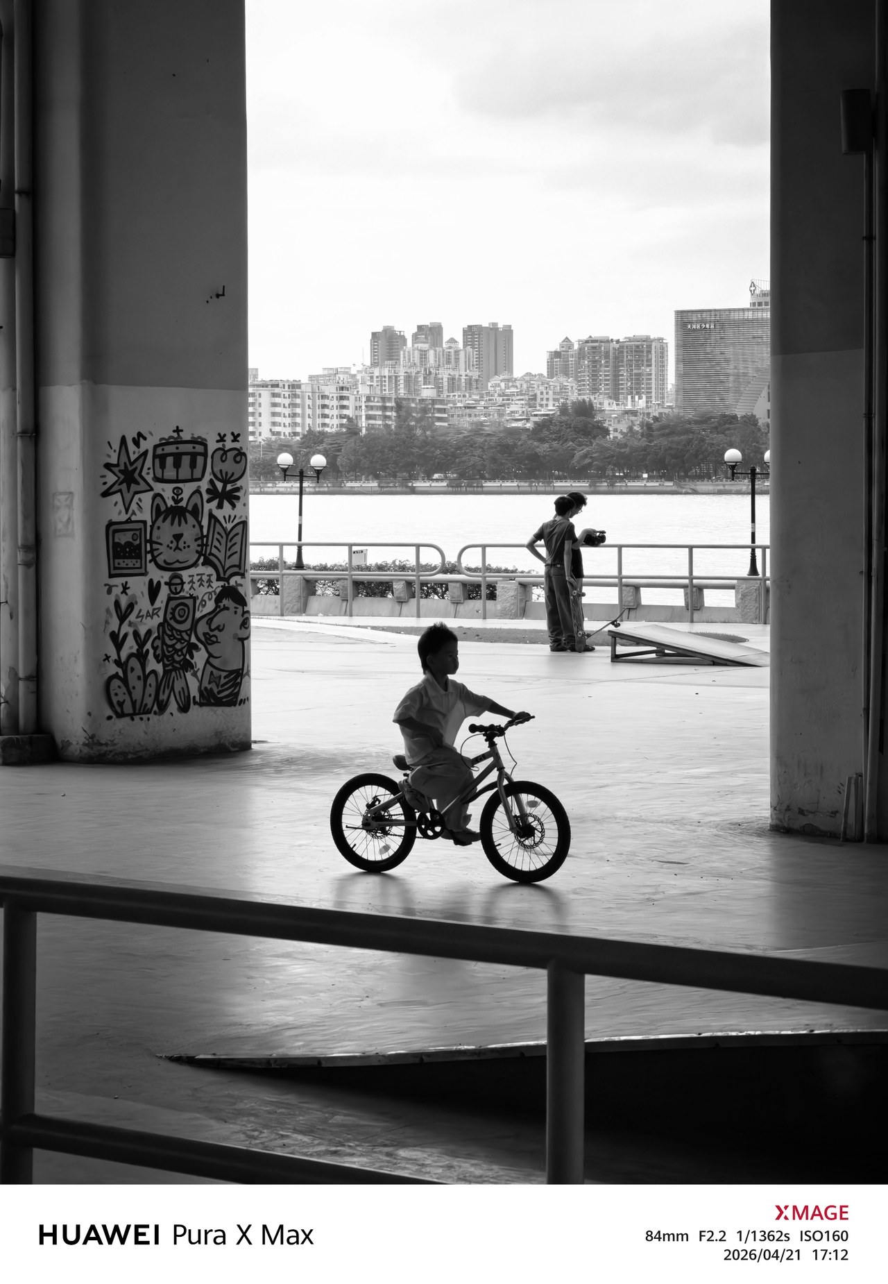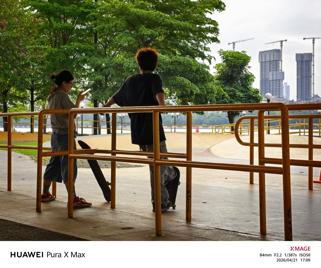 长焦部分,从珠江对岸建筑物锐利的线条,到滑板场地边上粗糙的人行道,再到售票机投币口的细微划痕,Pura X Max 都能很好的保留对应的质感,没有 AI 涂抹、糊弄的痕迹。