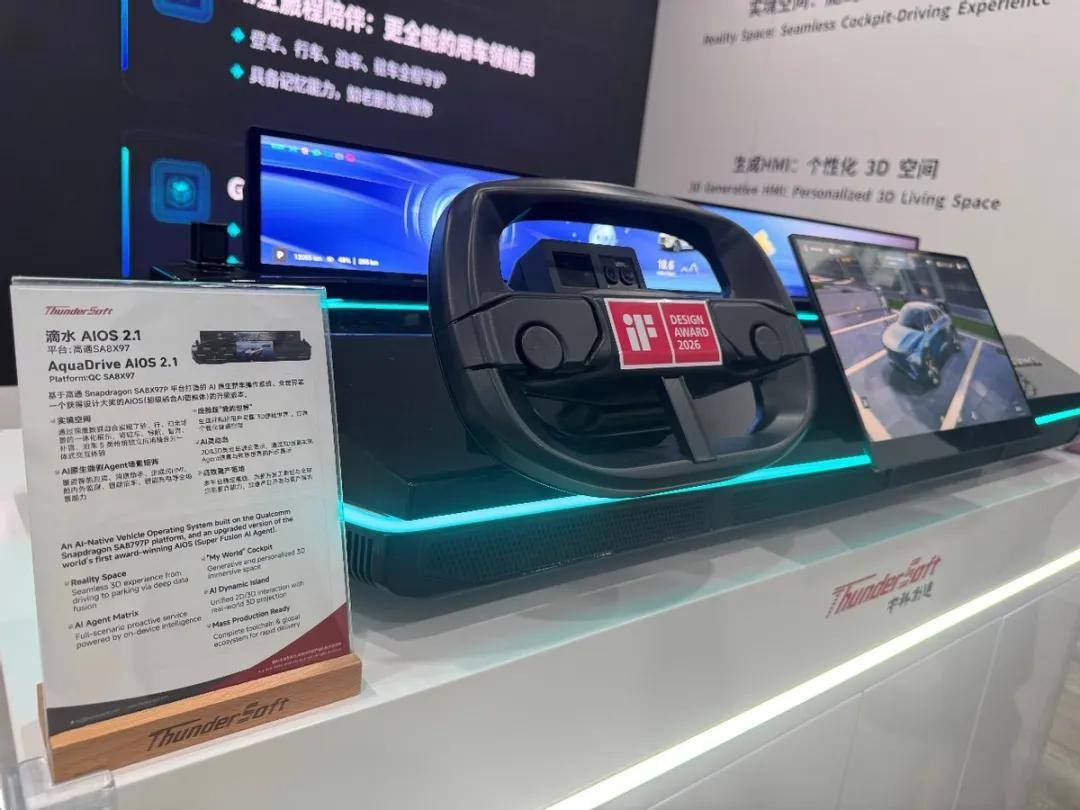 除了新车、新宣布,我们还在车展上找到了火遍全球的"龙虾"。中科创达的展台带来了他们的滴水AIOS 2.1,据工作人员介绍:这款AI原生汽车操作系统,采用了骁龙汽车平台至尊版,依托全新OpenClaw架构搭建AquaClaw汽车智能体技术底座,真正让操作系统实现从内到外的重构,让智能座舱向“主动全域智能”演进。
