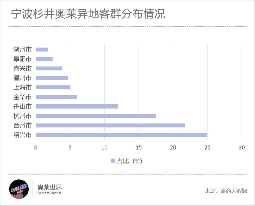 客群结构上,赢商大数据显示,宁波杉井奥莱本地客群占比高达82.1%,远超全国行业平均范畴的60%~75%。
