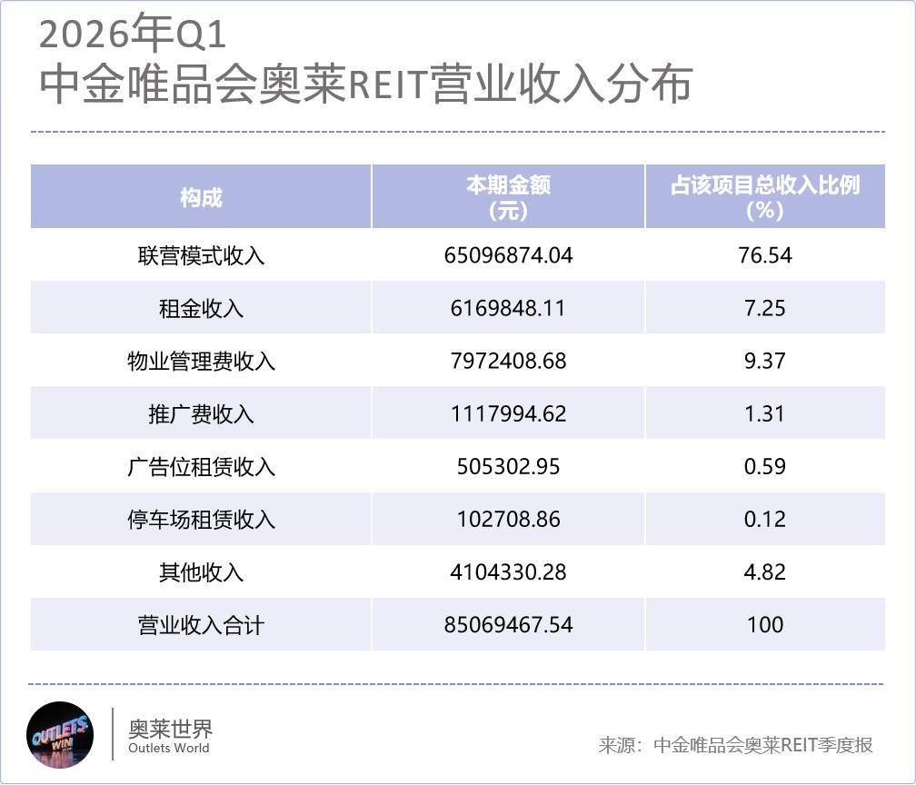 2026年第一季度,中金唯品会奥莱REIT底层资产宁波杉井奥莱实现营业收入 8506.95 万元,对应营业成本/费用7747.08万元,EBITDA 达6245.30万元,现金转化能力较强。