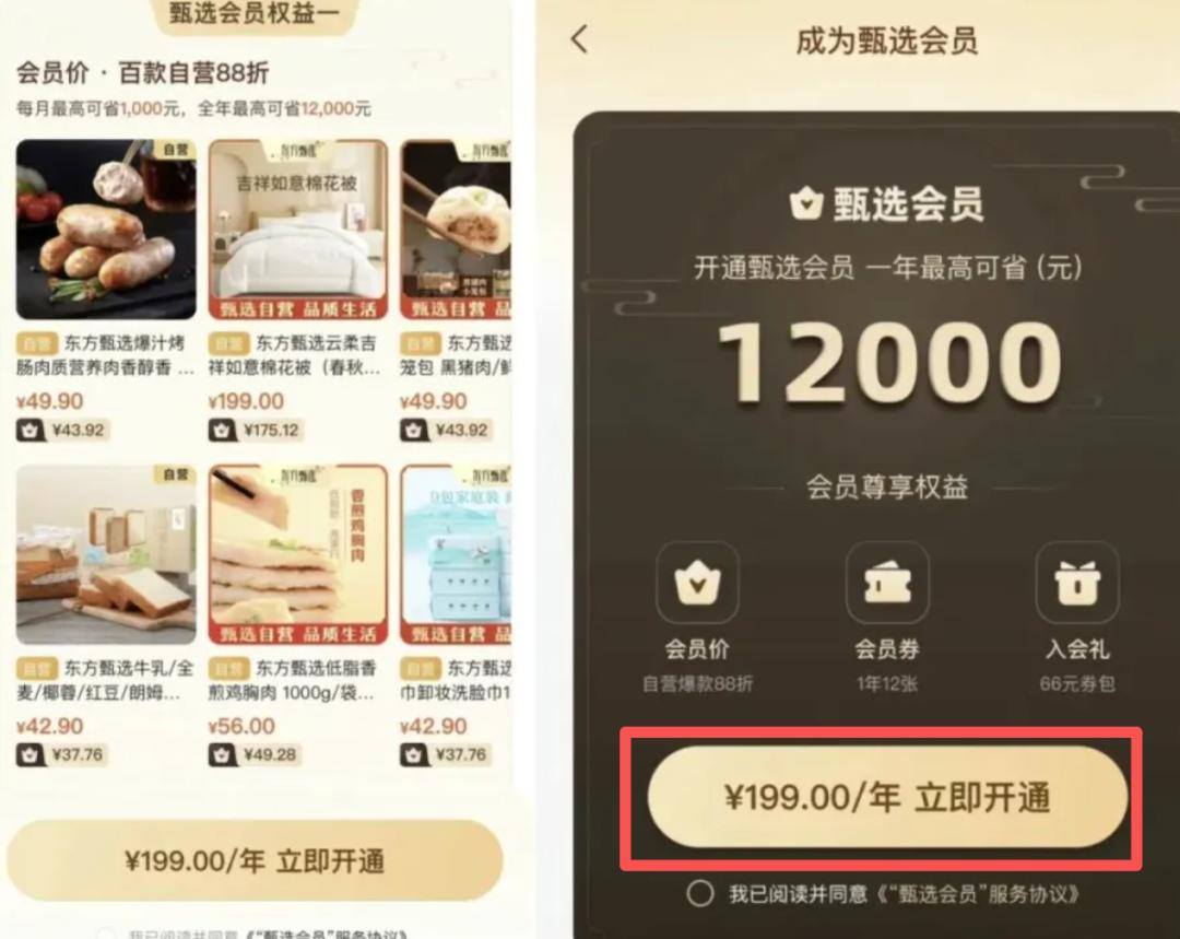 《电商最前线》了解到,东方甄选付费会员年费为199元,会员权益包含自营商品88折、专属优惠券、消费差额可退等承诺,此前平台会员订阅量已突破26万。