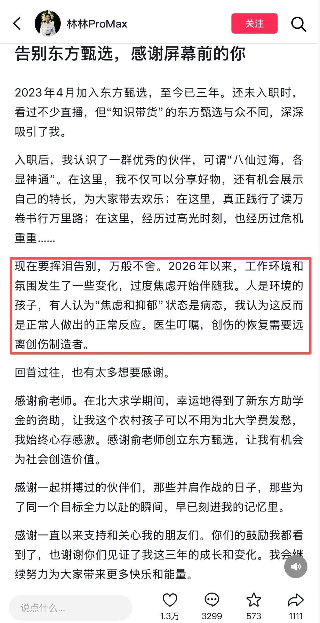 对于明明、天权、中灿、林林这些从东方甄选创业期就一路走来的主播而言,他们对平台的感情是深厚的,他们见证过直播间从无人问津到万人空巷的全过程。