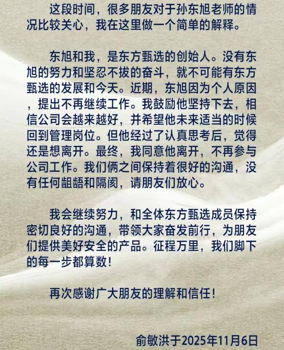 俞敏洪承诺,后续东方甄选将优化管理模式,在制度建设和人文温度之间寻找更好的平衡。