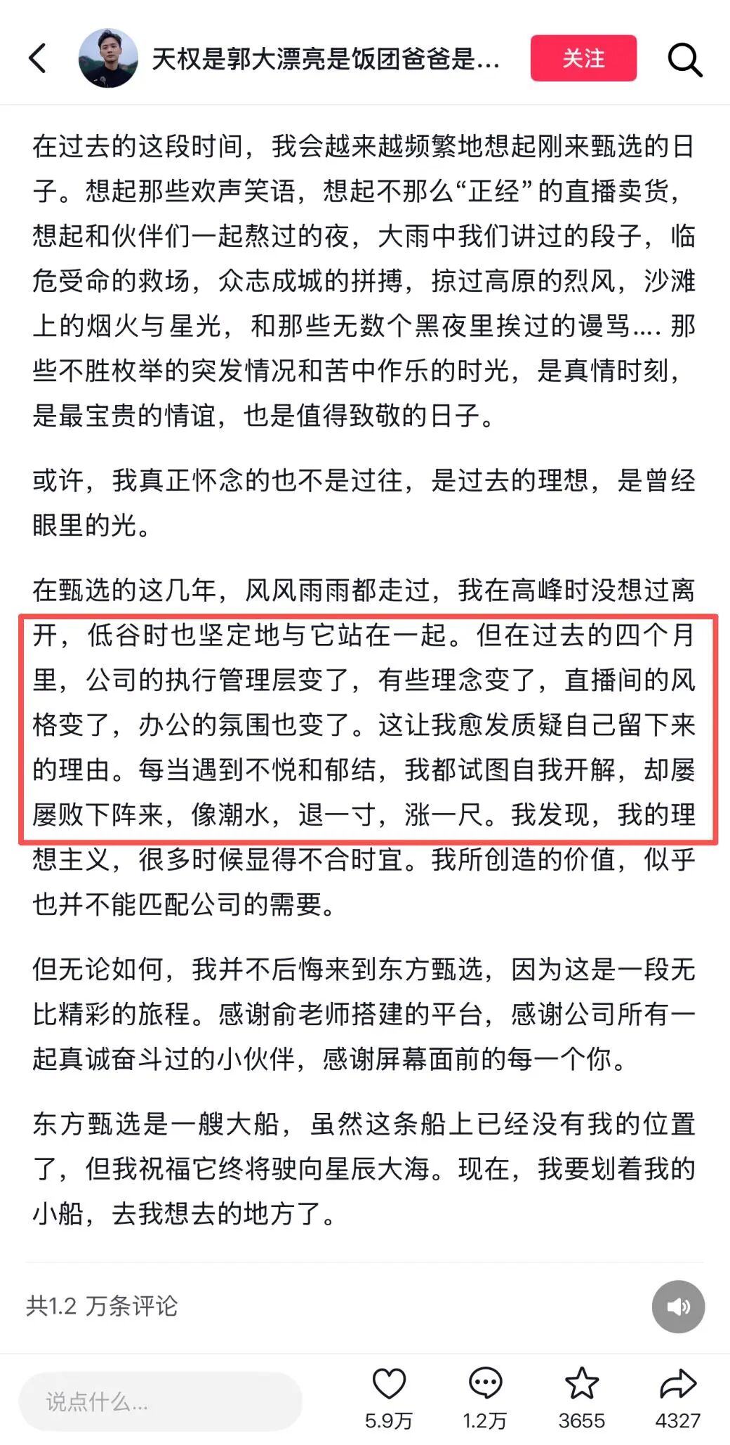从董宇辉出走时的深夜长文,到东方小孙离开时的感慨万千,再到如今四位主播集体告别后的直播致歉,俞敏洪似乎总是在“亡羊”之后才来“补牢”。