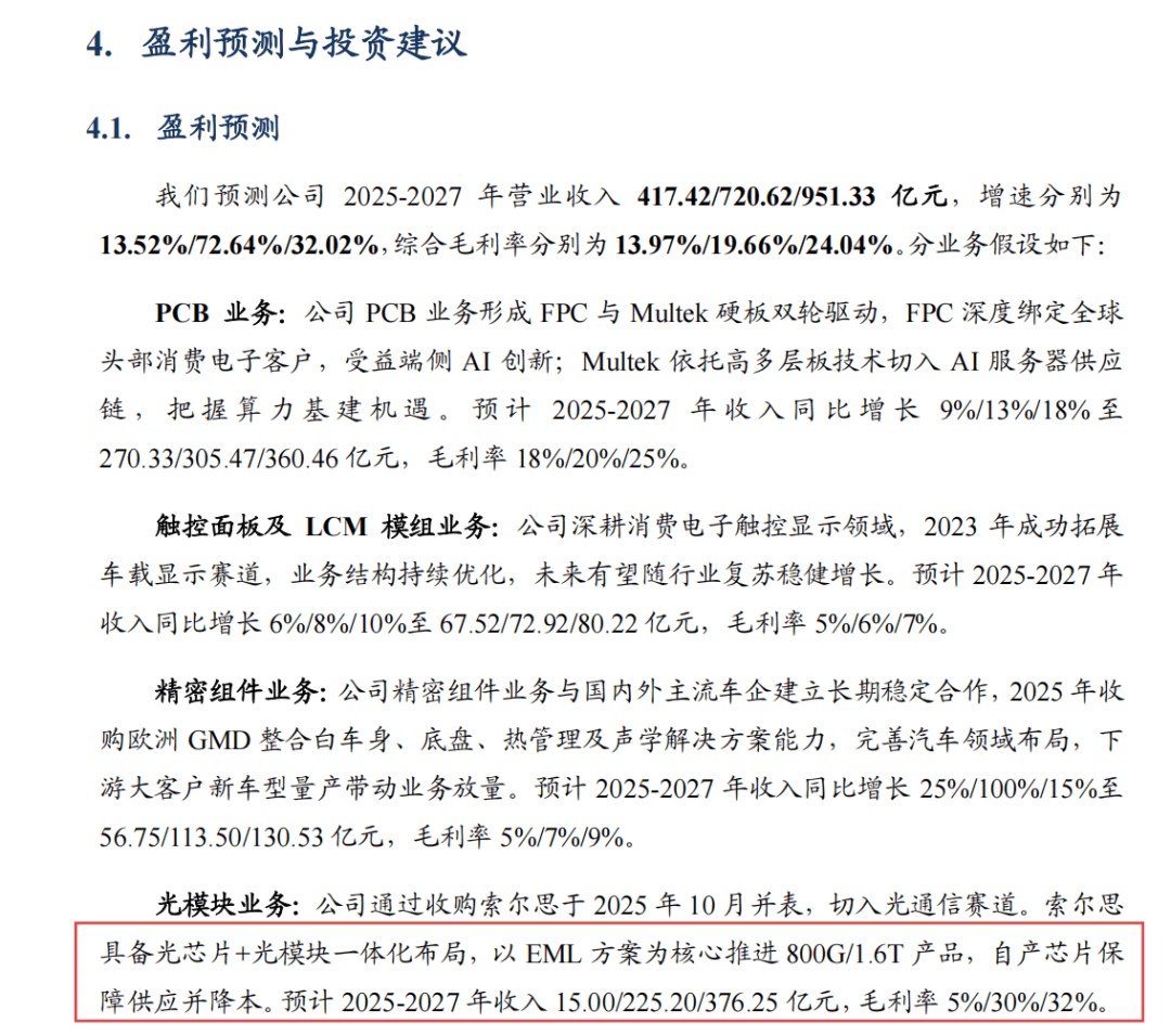 这意味着,市场交易的已经不只是当下的东山精密,而是未来几年光模块业务高速放量后的东山精密。