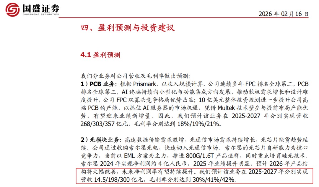 国盛证券《东山精密AIPCB+光模块双翼齐振,聚力新程》,2026年2月16日